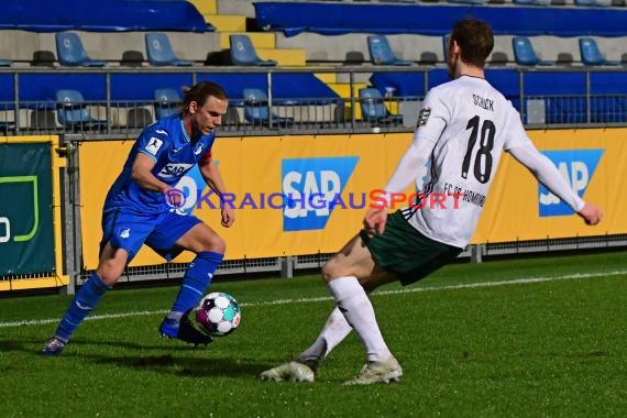 | Hoffenheim, Deutschland 19. Januar 2021:Regionalliga Suedwest - 2020/2021 - TSG 1899 Hoffenheim II vs. FC 08 Homburgv. li. im Zweikampf Robin Szarka (TSG 1899 Hoffenheim II) und Philipp Schuck (FC Homburg) |